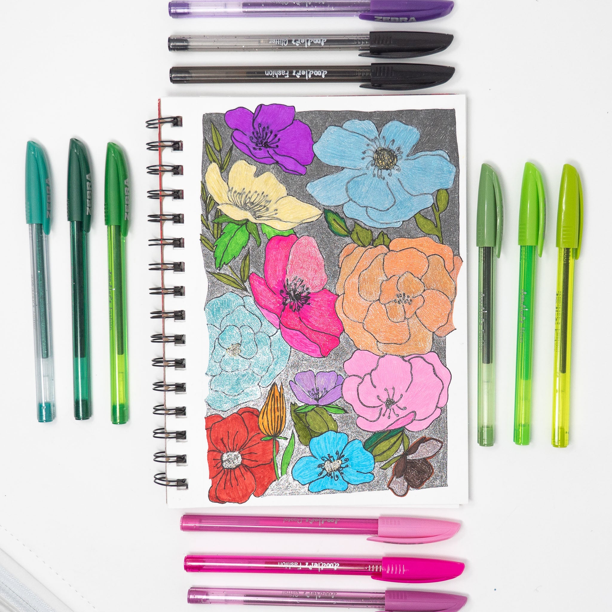 - Includes 5 black, 3 blue, and 2 red pens
