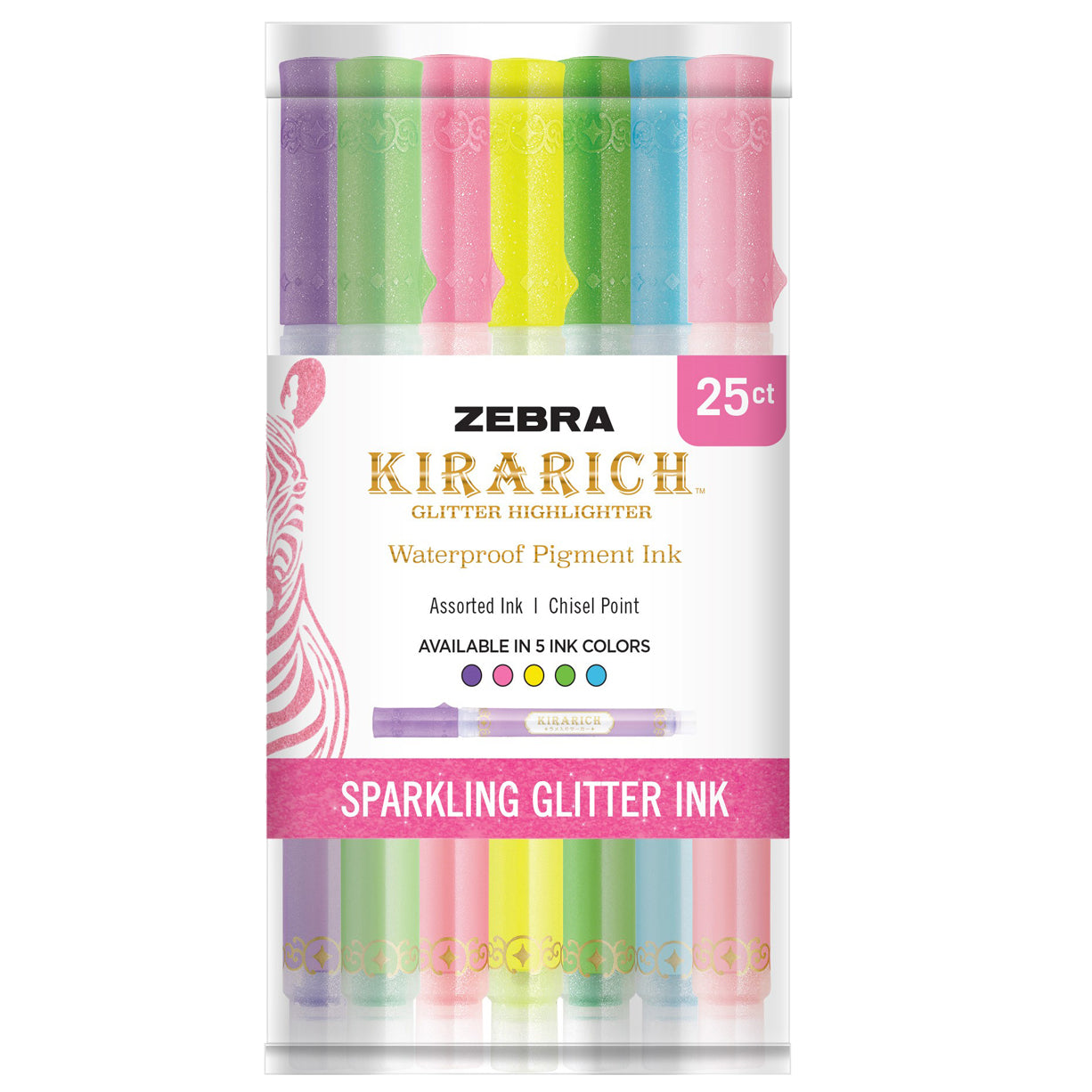 Add a bit of shimmer and shine to your notebook or planner with the KIRARICH Glitter Highlighter. The KIRARICH features a water-based ink formulation that is infused with glittering particles allowing for a fabulous glisten in your next creative project.