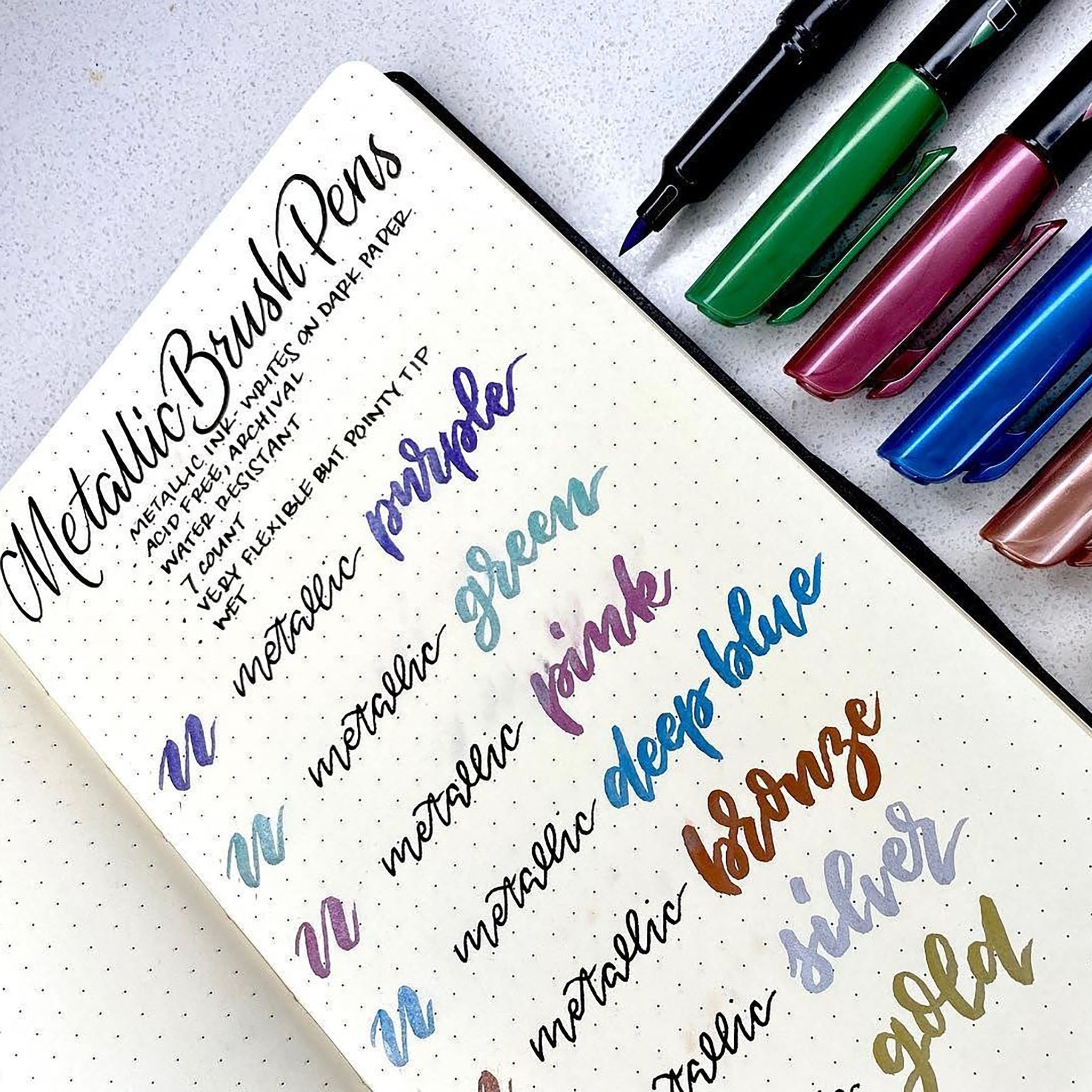 Add some pizazz to your lettering or crafts with the metallic brush pen! The medium tip mimics an artist’s paint brush and allows for free-flowing brush marks while lettering. A vibrant metallic color works well on light and dark papers.