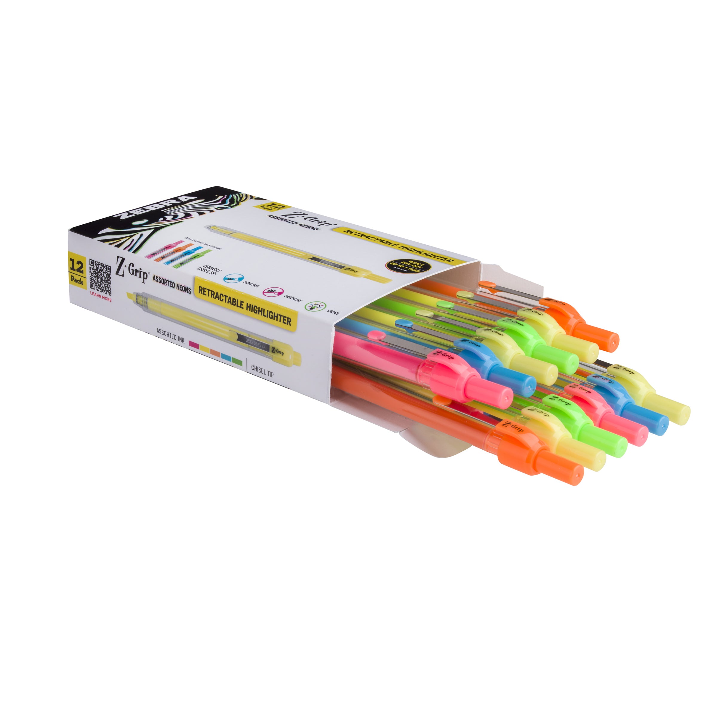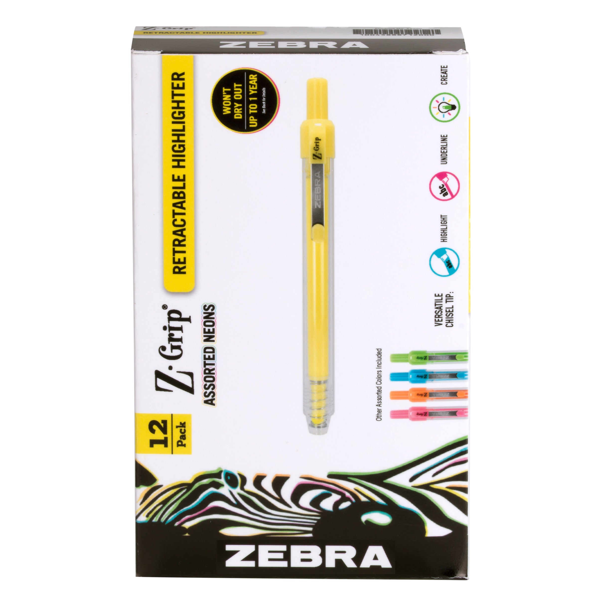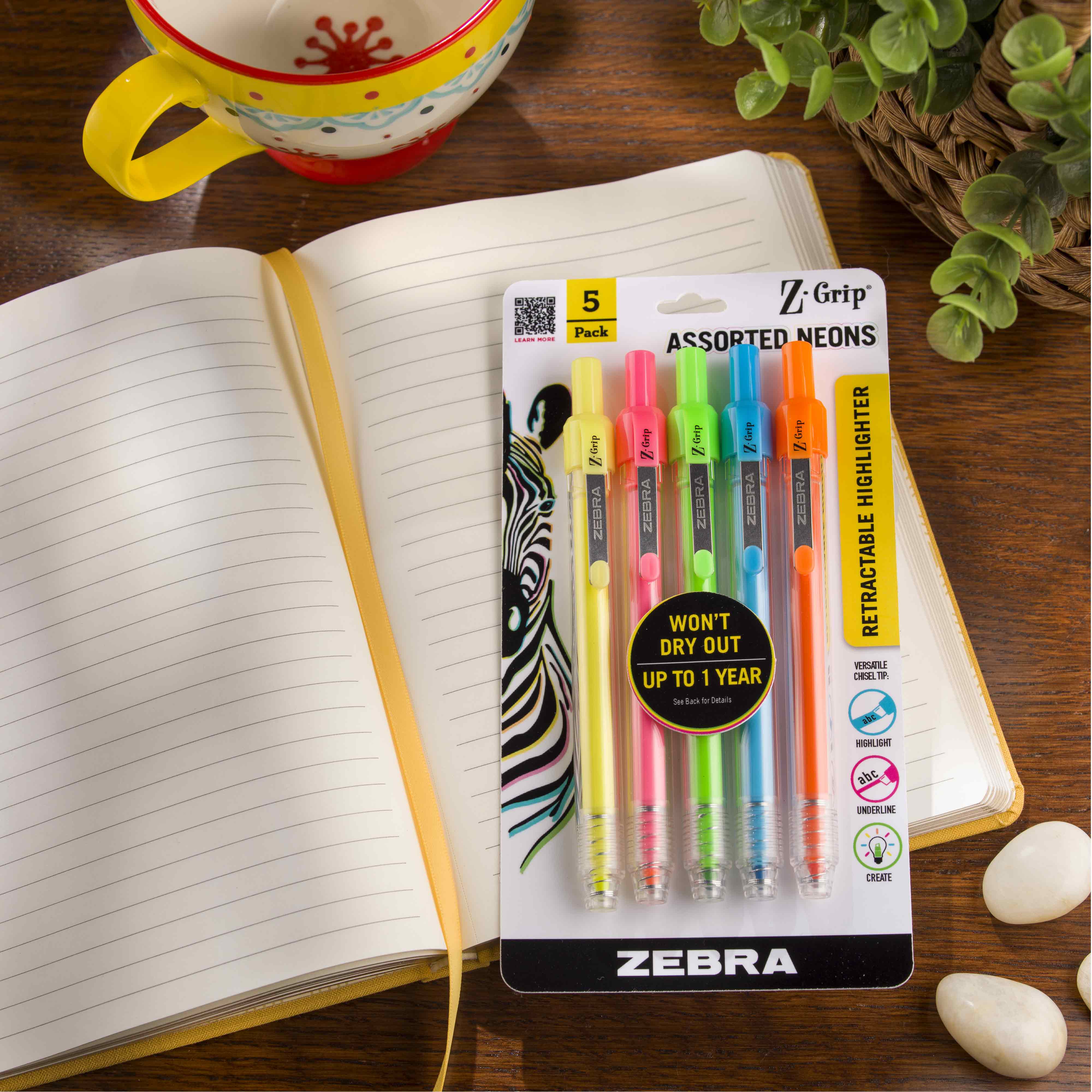 - Cue the hues with assorted colors! Pen Z-Grip Retractable Highlighter has vibrant neon colors that make any creative work a little more snazzy in the office, art department or studio