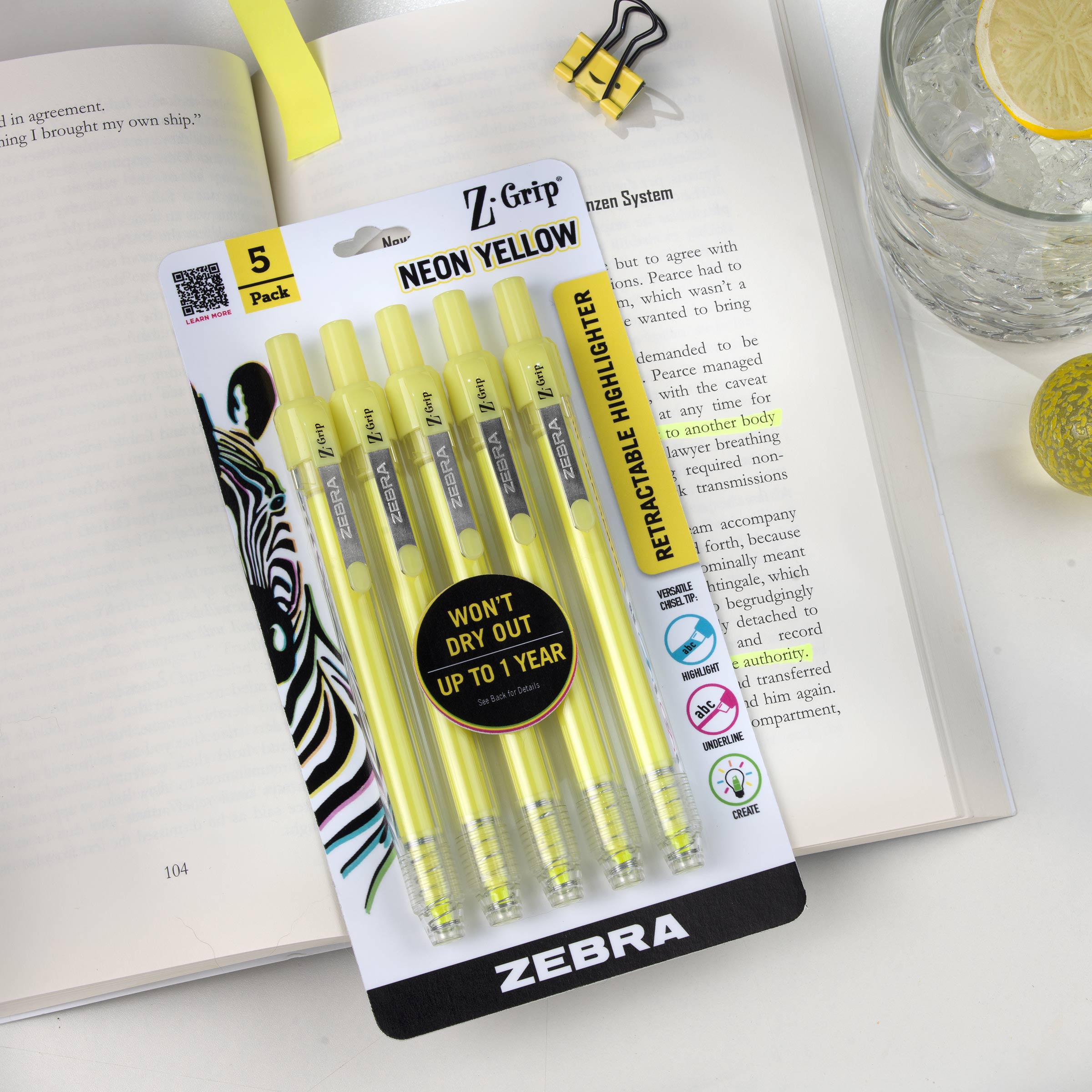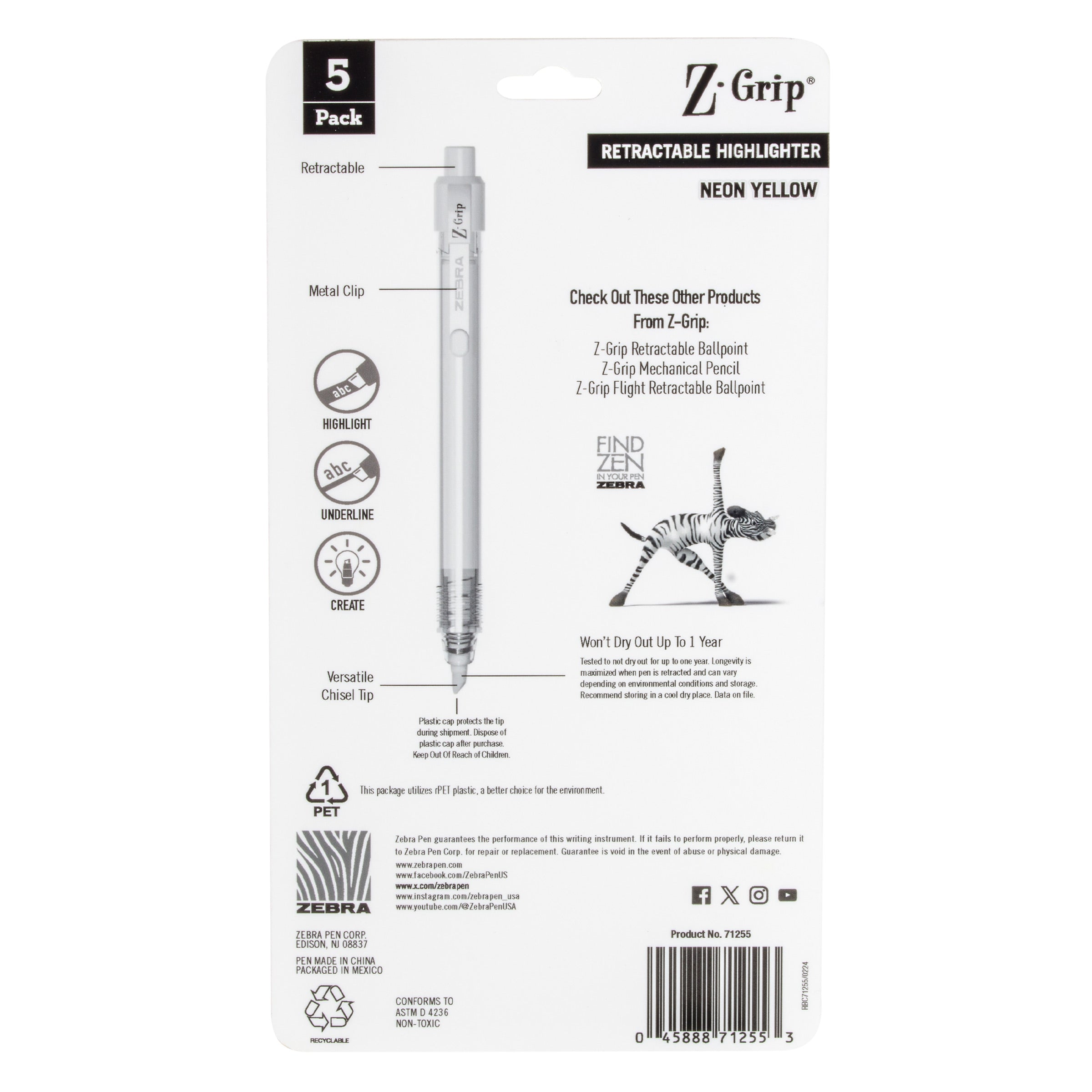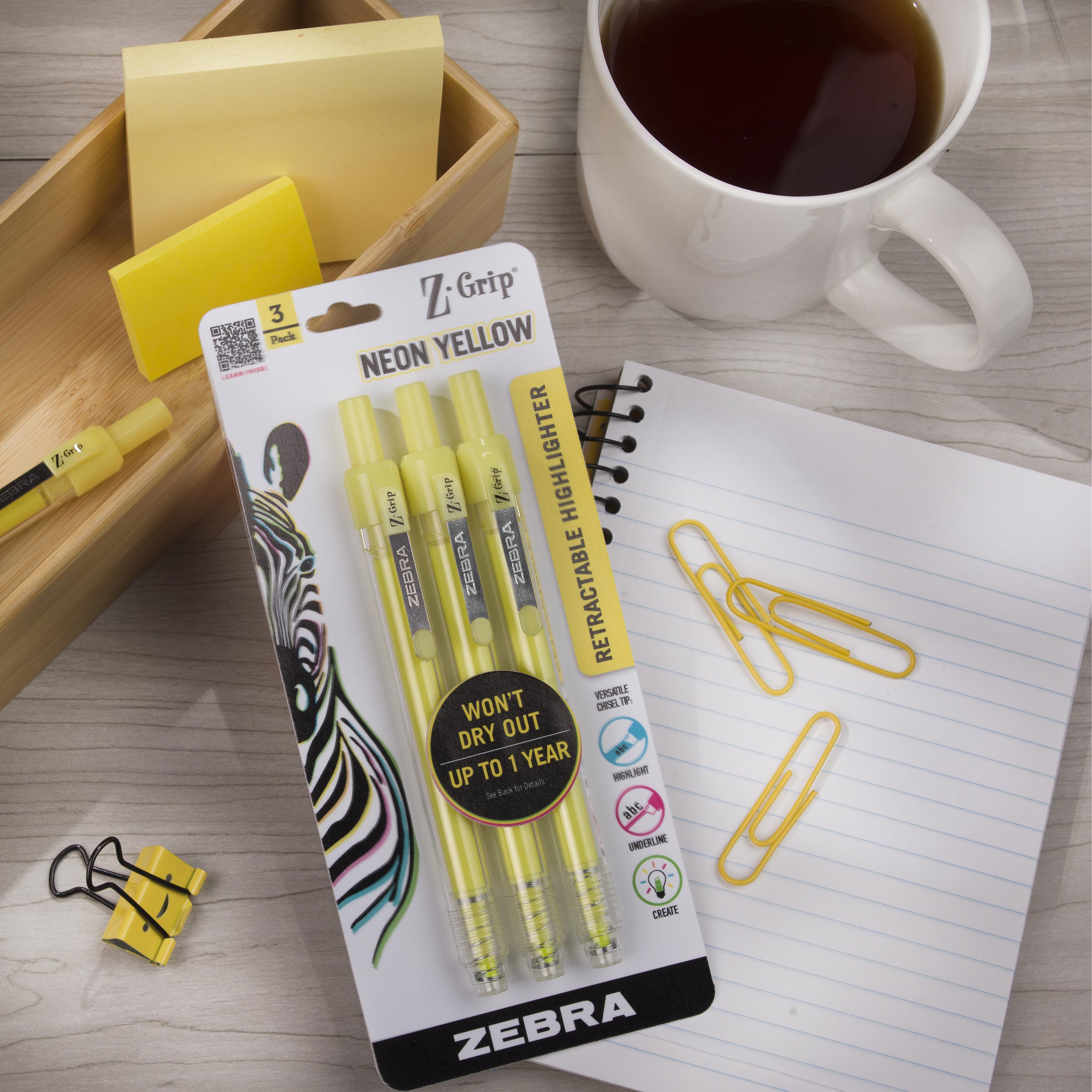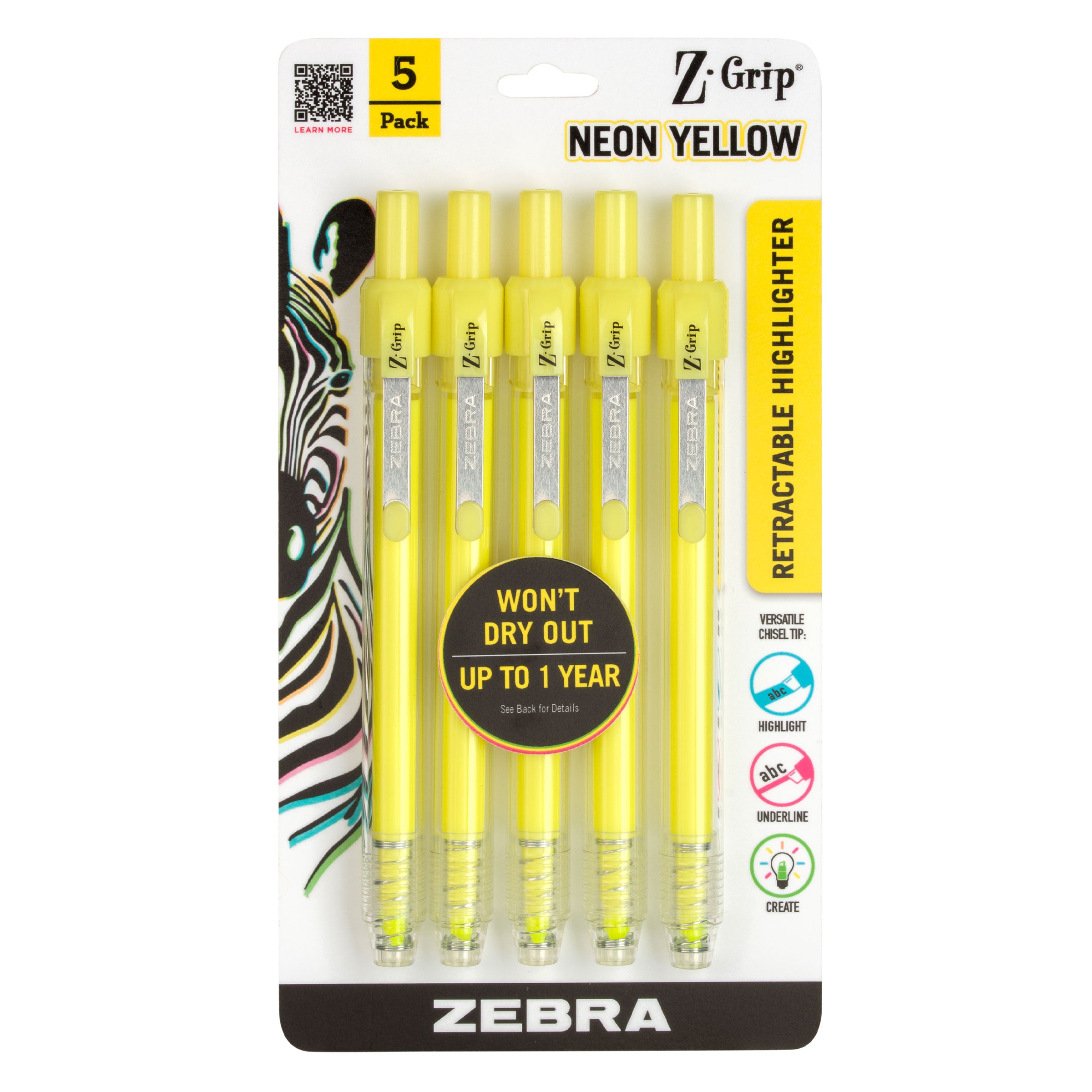- Cue the hues with assorted colors! Pen Z-Grip Retractable Highlighter has vibrant neon colors that make any creative work a little more snazzy in the office, art department or studio